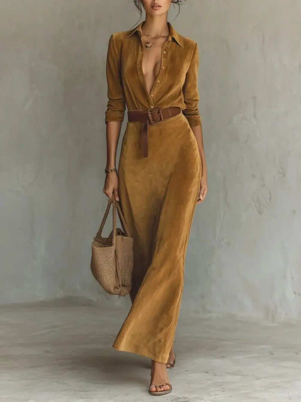 Juliette | Belted Velvet Shirt Collar Maxi Dress