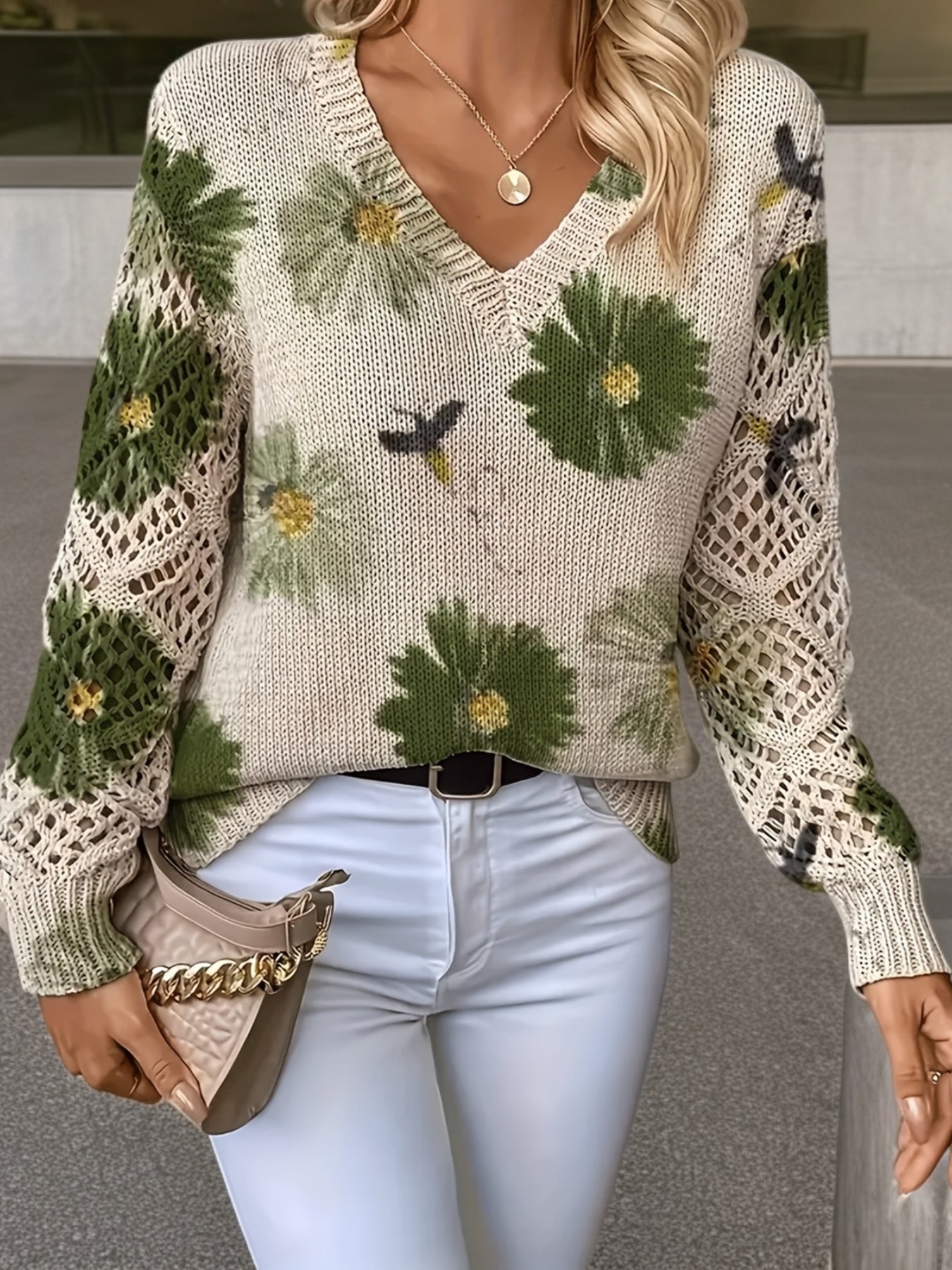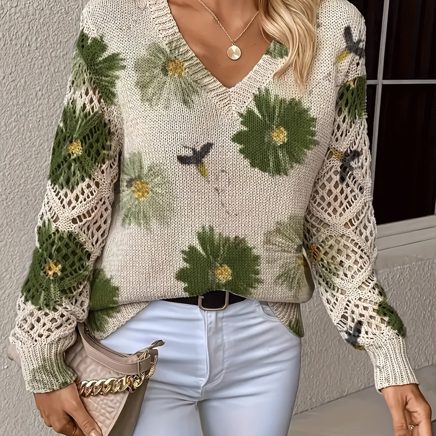 Wrap yourself in gentle comfort with this beautifully detailed sweater, blending soft knit florals with airy crochet sleeves for a look that feels both relaxed and refined. It’s the kind of piece that instantly elevates your everyday outfits—effortless, feminine, and wonderfully wearable for women who appreciate comfort without compromising elegance.